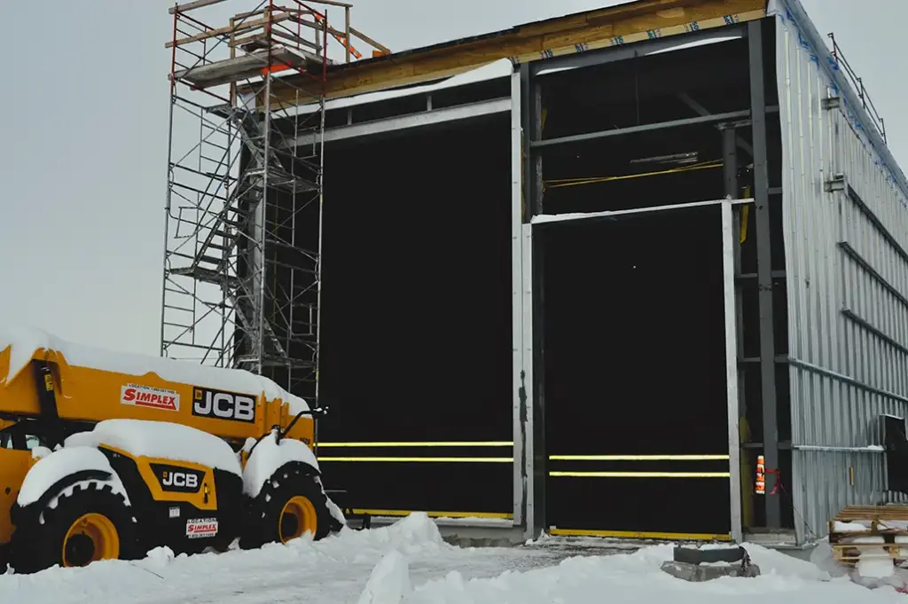 La porte Tech-Roll™ MEGA est conçue pour les grandes ouvertures, dès 25' x 25', avec un dégagement en tête d'au moins 35 pouces. Idéale pour l'accès aux équipements de grande taille, elle offre une durabilité exceptionnelle.