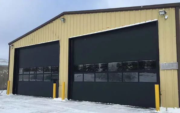 Laminé à partir d’acier galvanisé commercial. Rails verticaux inclinés pour assurer l’étanchéité contre les intempéries. Rail horizontal courbé disponible avec un rayon de 12 po (305 mm) ou avec le rayon habituel de 16 po (406 mm).