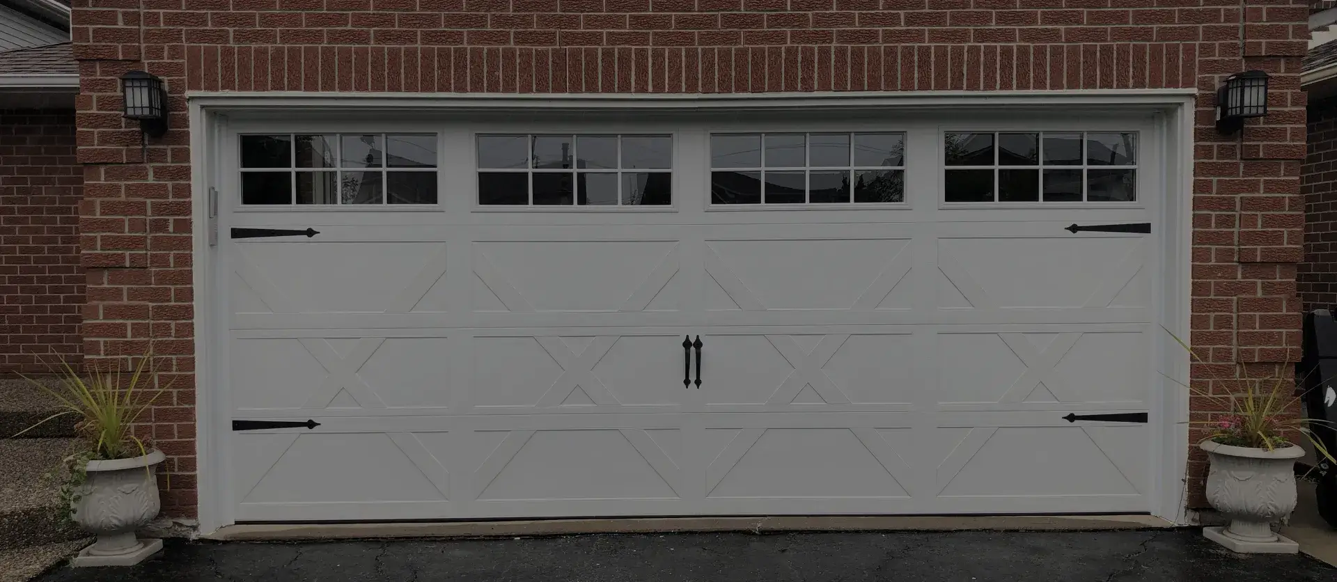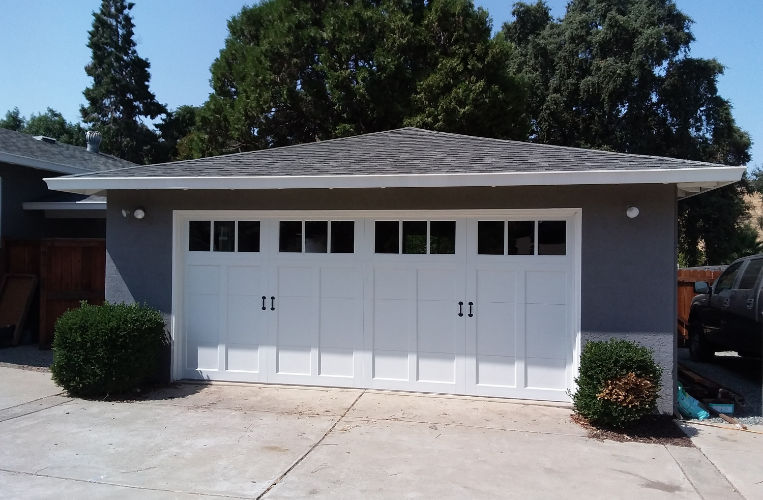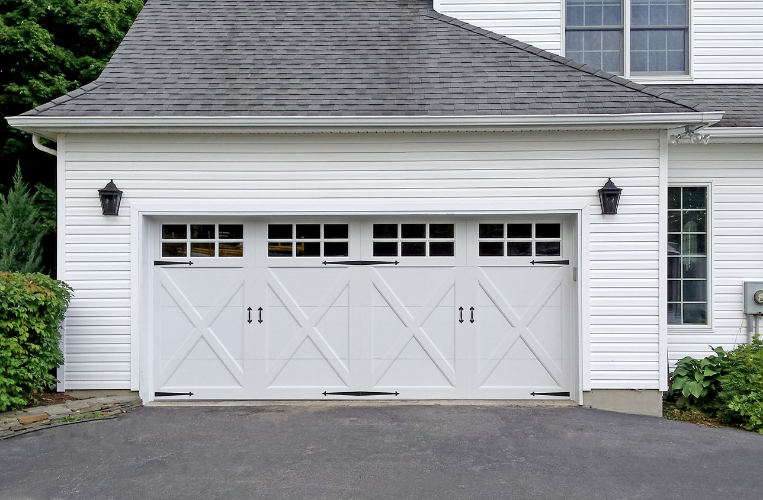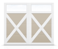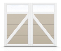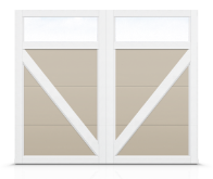 - Porte à quatre sections avec des planches de fibrex superposées.