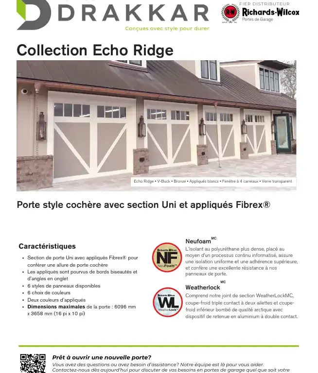 - Porte de garage isolée de 1 3/8 po (R12) en polyuréthane Neufoam™.