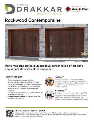 La porte cochère à trois sections Rockwood ajoute une touche chaleureuse et distinctive à votre domicile. Les appliqués en cèdre rouge clair, conçues sur mesure, sont installées sur des panneaux d’acier de pointe, isolés à la mousse, offrant ainsi une solidité inégalée et une épaisseur totale de 2 3/4 po (70 mm).